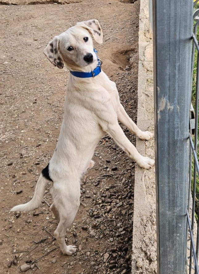 BOLET es un cachorro simpático y activo encontrado junto a su hermano. Al principio se muestra desconfiado, pero la curiosidad siempre puede con él y termina acercándose para ver qué haces. Los voluntarios ya hemos conseguido ponerle el arnés y sacarlo a pasear un par de veces; aún duda, pero cada día avanza un poquito más.
